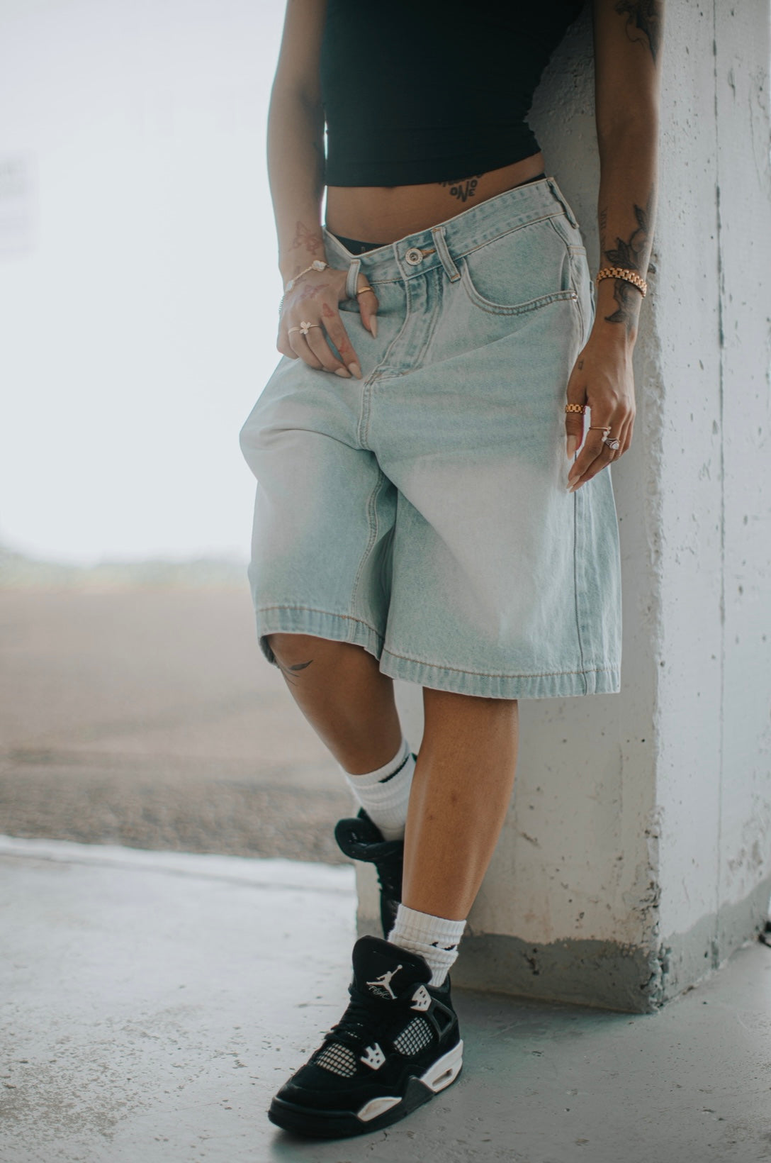 Casual Loose Fit, Non-Stretch Fabric, Regular Length, Street Style. They can be fitted or baggy, with lengths from thigh-high to just above the knee. Made entirely from durable denim fabric, often repurposed from jeans